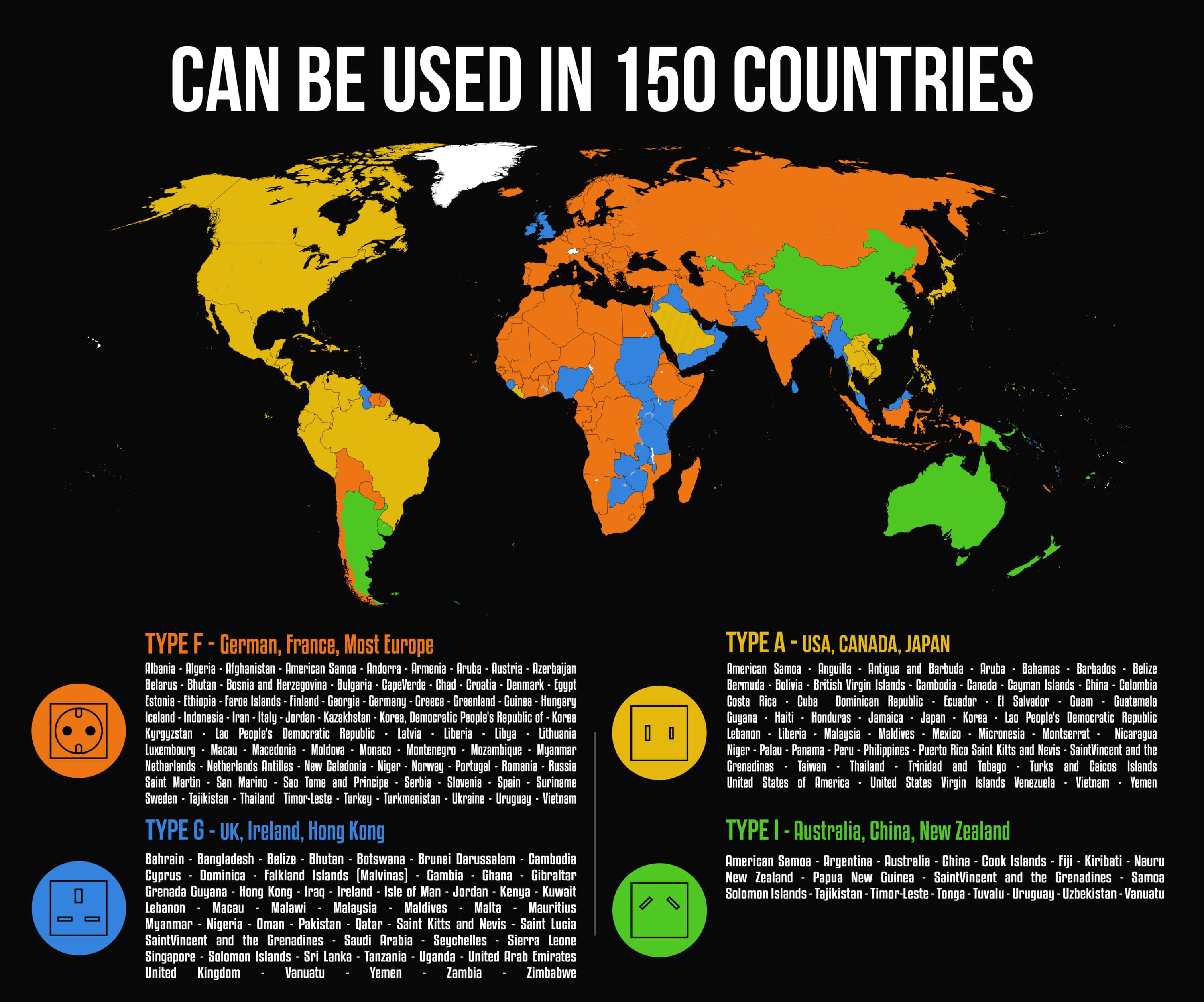 ★ VERSATILE PLUG OPTIONS - UK (Type G), US (Type A), AU (Type I) , EU (Type C/E/F) plugs compatible with outlets in North America, United Kingdom, most of Europe, Australia, Japan, parts of Africa, Middle East, Asia, China, and more never be without power no matter where you are!
